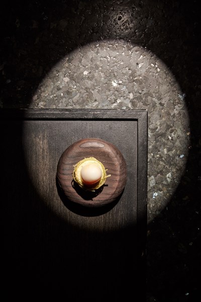 Fra det øyeblikket du blir ønsket velkommen med et glass lokal cider, til du føres inn i et stemningsfullt rom med åpent kjøkken og glødende kull, er hver detalj nøye komponert for å begeistre sansene. Rettene, ofte overraskende og komplekse, balanserer elegante smaker med dristig kreativitet – som and med vinterepler og vin jaune, eller andre sesongbaserte mesterverk.